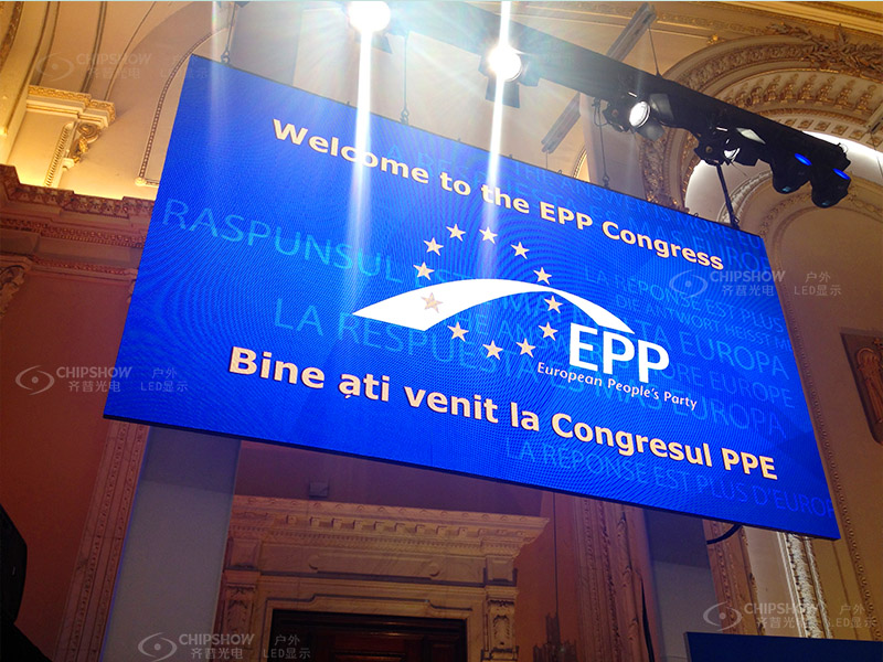 比利时_欧盟EPP会议 室内P5会议用LED显示屏,德国默克尔总理发表重要讲话
