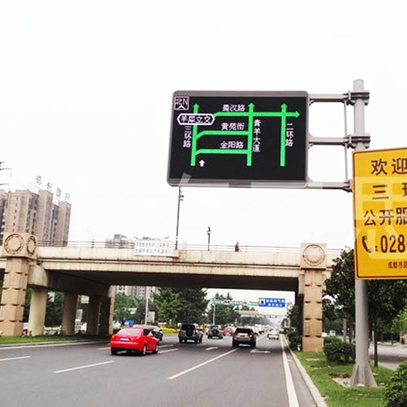 城市交通诱导屏是根据交管部门的具体使用要求实时在信息标志板上发布 交通状态信息。如道路封闭、突发事件、车道拥挤、停车泊位等信息。